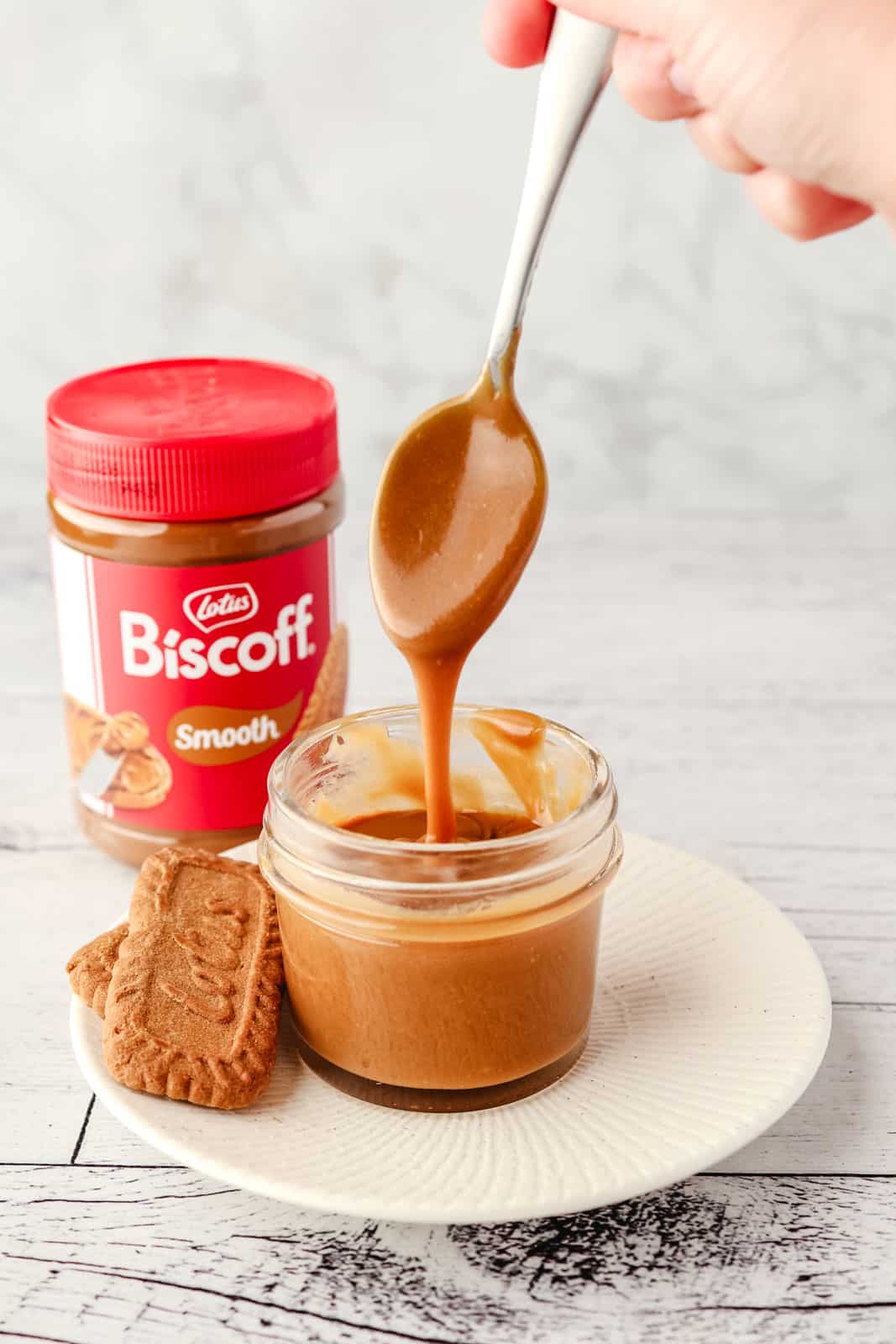 Lotus Biscoff spread: smooth will give you the most pourable sauce but you can try mixing things up with crunch if you prefer: